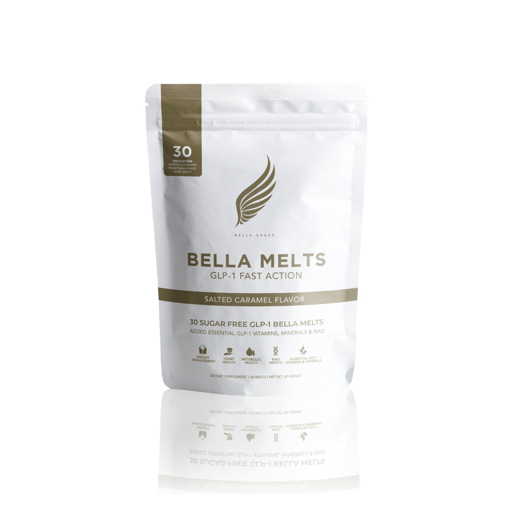 Bella Melts is een heerlijke karamel traktatie met krachtige plantaardige ingrediënten en essentiële voedingsstoffen. Elke suikervrije melt werkt op natuurlijke wijze samen met uw lichaam om GLP-1 te activeren, waardoor u zich sneller verzadigd voelt, langer een vol gevoel houdt, minder trek hebt en meer calorieën verbrandt.